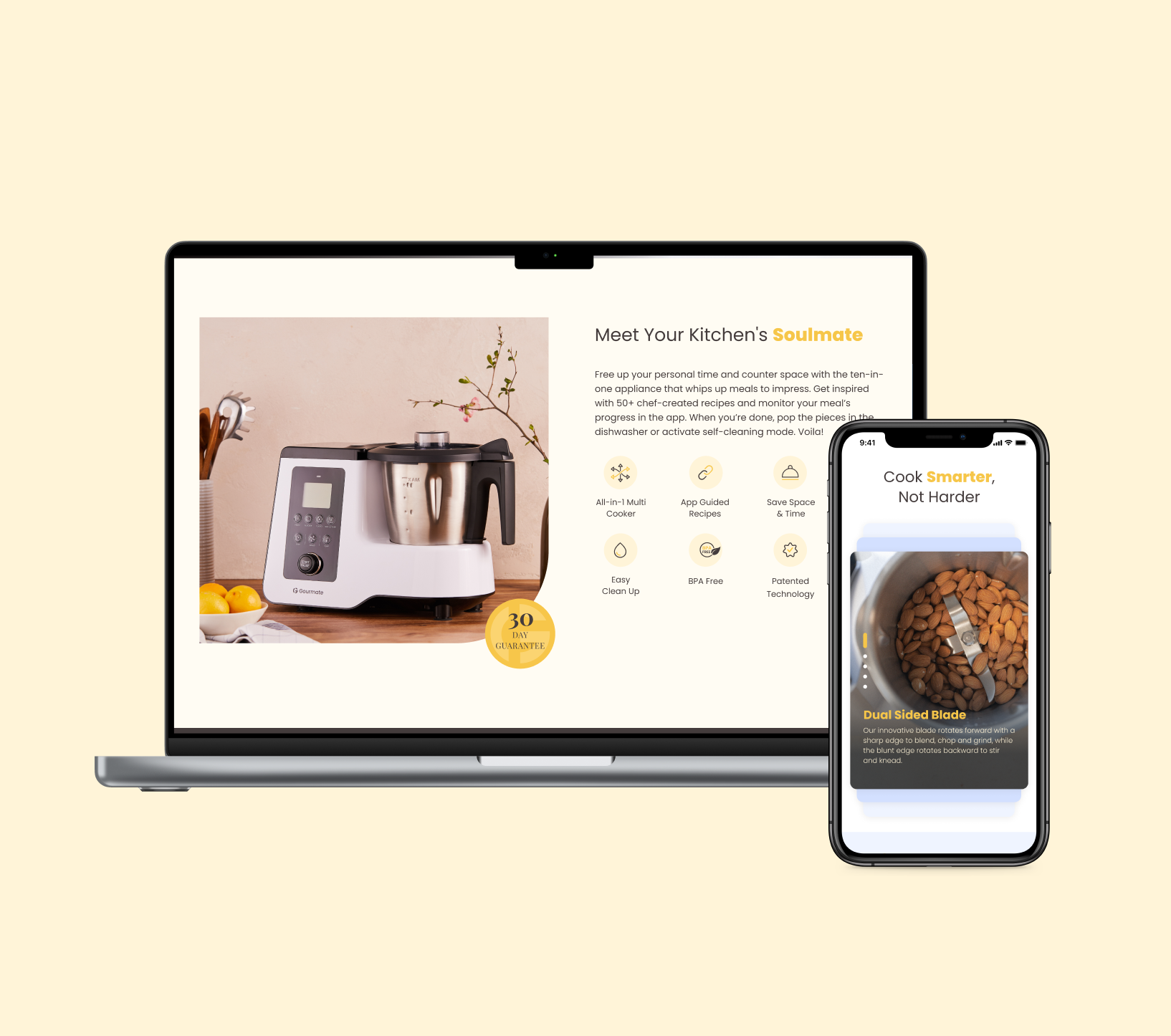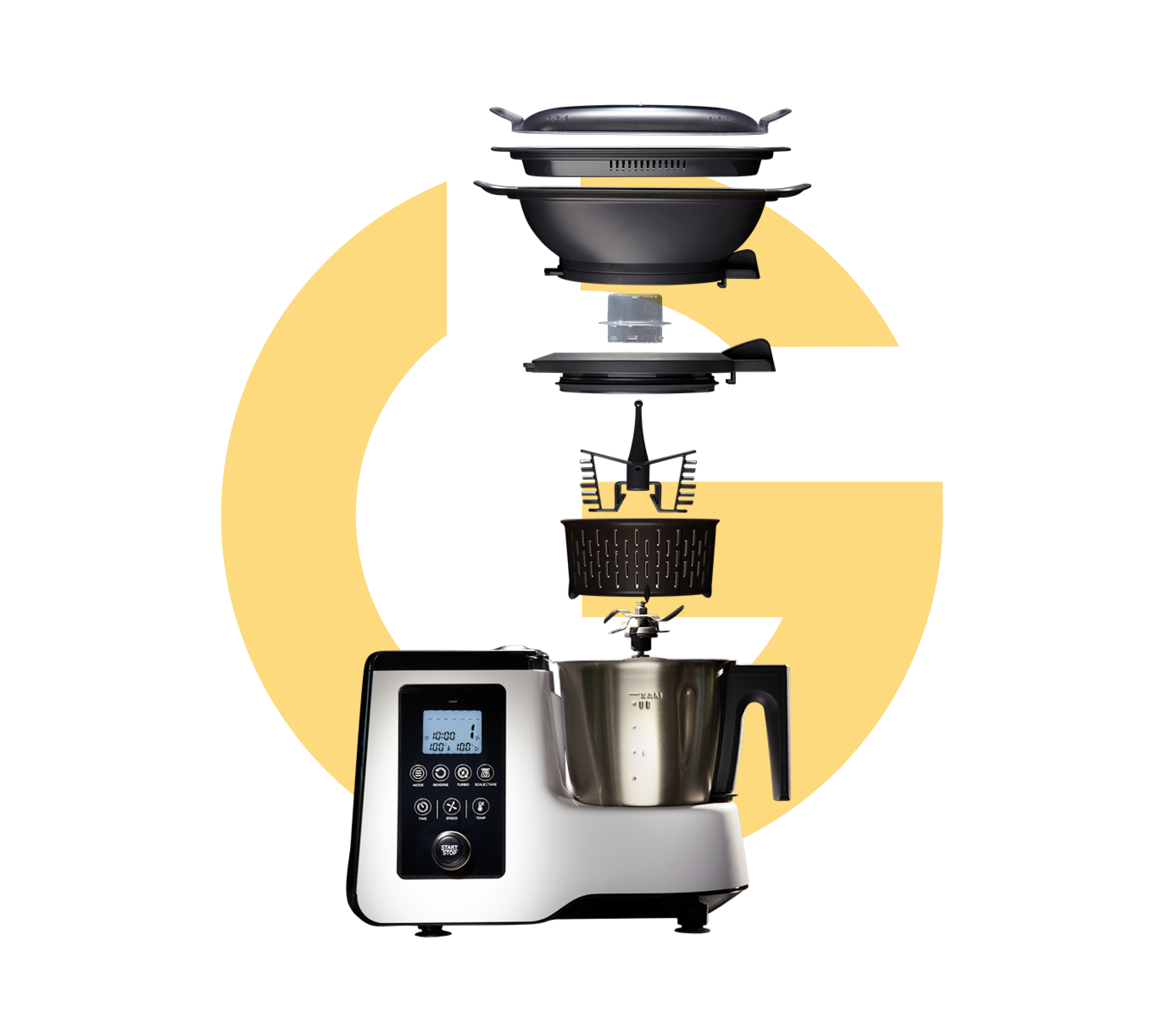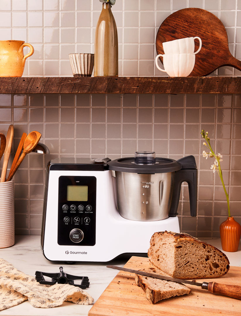 Gourmate is an all-in-one smart cooking appliance. With a mobile app, the machine can be operated in an endless number of ways and offers guided recipes as well.