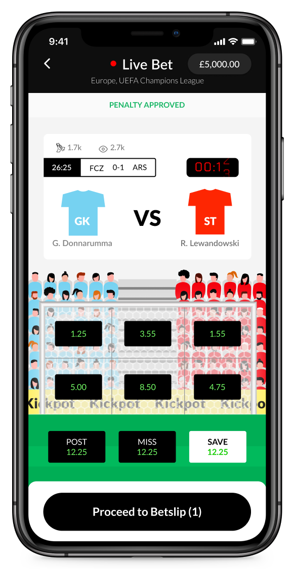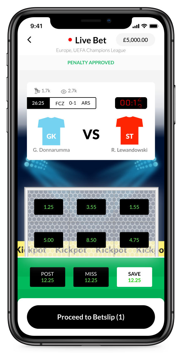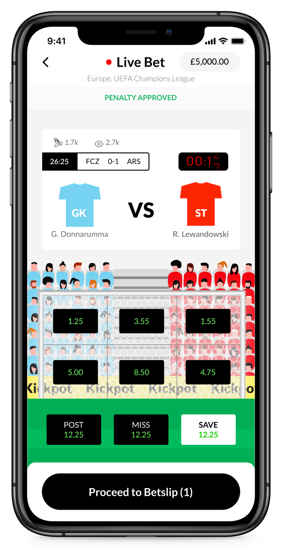 With Kickpot you can predict penalty in real time, earn virtual coins and even compete with your friends!