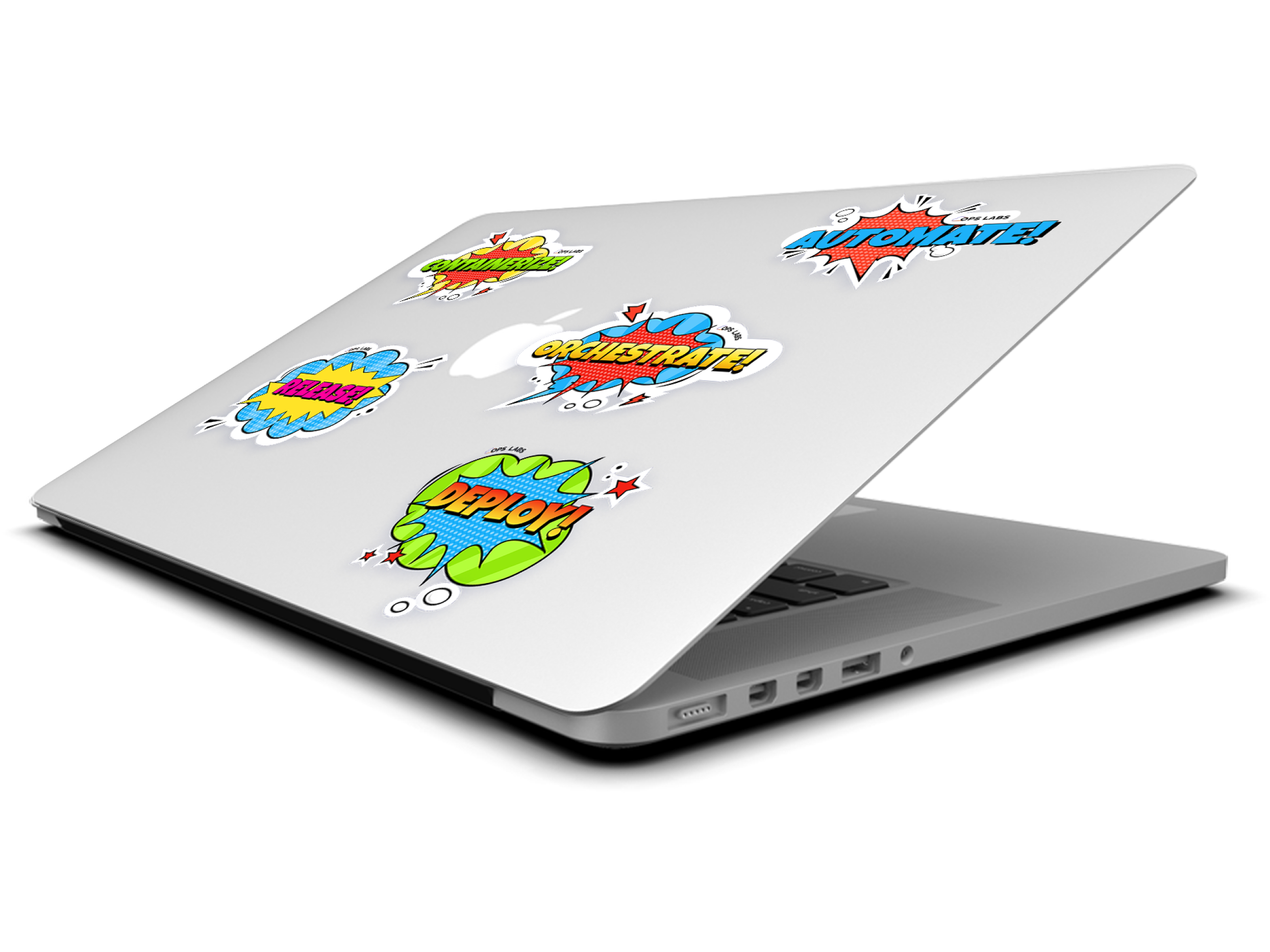 Especially for the conference, we created superheroes stickers characters inspired by pop art, Each character represents a different company from the DevOps world.